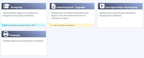 Βήμα 1: Μετά τη σύνδεσή σας , εμφανίζεται η κεντρική σελίδα με όλες τις διαθέσιμες επιλογές μενού.
